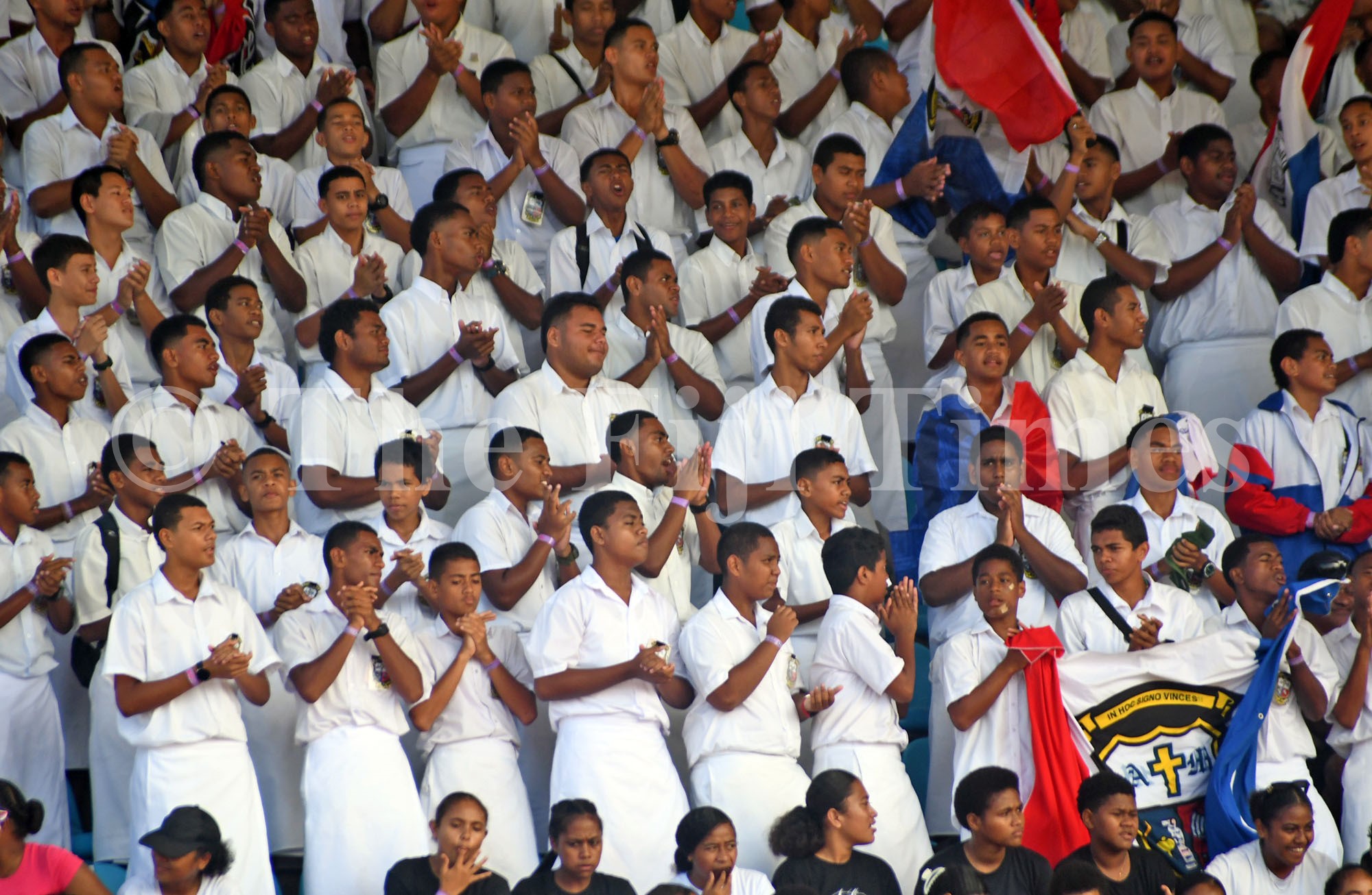 Marist Brothers High School students cheer on their athletes during the 2024 Coca-Cola Games athletics competition at the HFC Bank Stadium in Suva on Thursday, May 02, 2024. Picture: JONACANI LALAKOBAU