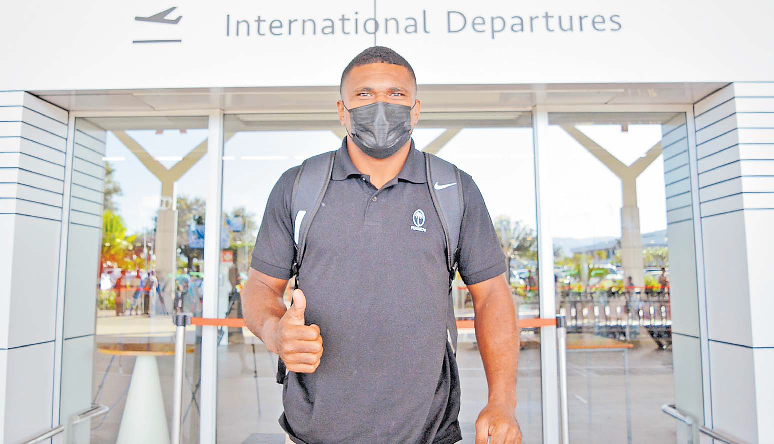 Tevita Daugunu at the Nadi International Airport yesterday before the Fiji 7s team departs for the Singapore leg of the HSBC World Rugby Sevens Series this weekend. Picture: BALJEET SINGH