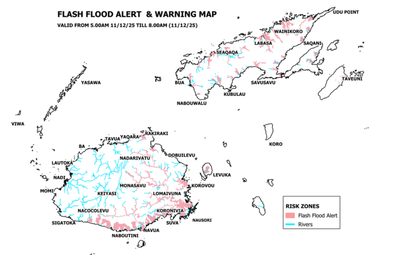 Flash flood warning for Serua to Navua coastal areas