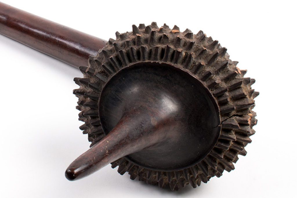 Some museum collections have shown that Fijian weapons sometimes had distinctive notches, drilled holes or even human teeth cut or inlaid into them. These were done to allow a warrior to ‘keep a scoresheet’ of his triumphs in combat.