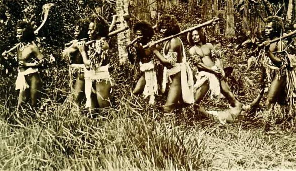 A depiction of Fijian warriors with their war clubs and spoils. Picture:WWW.GREENDRAGONSOCIETY.COM