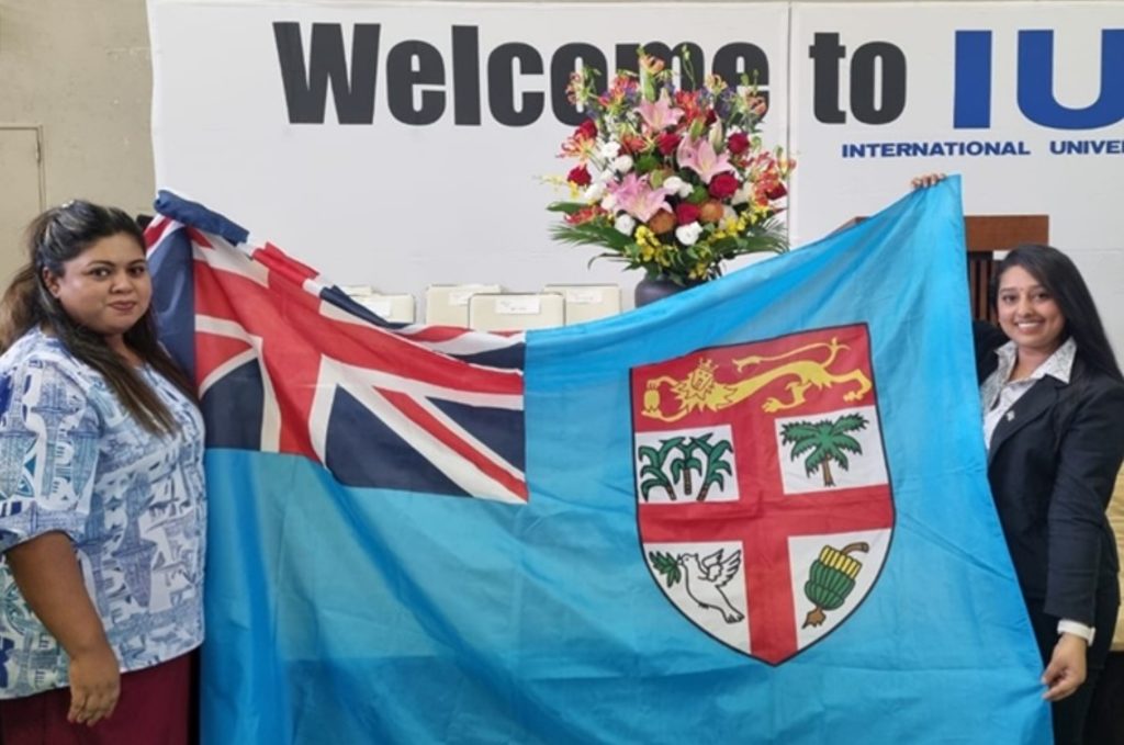 (L-R) Students, Sonam Prasad and Rishika Devi at the International University of Japan ( IUJ) Welcome Day. Picture: SUPPLIED