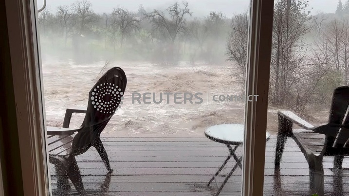 LOS ANGELES (Reuters) – Emergency officials in several California counties spent Friday patrolling levies and swollen rivers as an “atmospheric river” storm drenched the already-sodden state with torrential rains, causing floods that washed out roads and prompted evacuations.