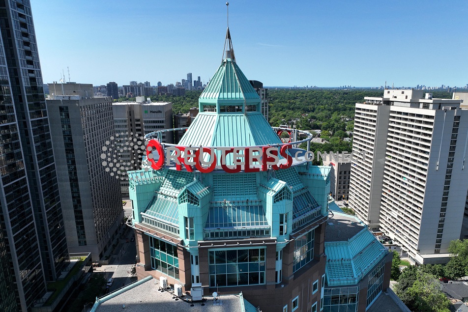 FILE PHOTO: The Rogers Building, the green-topped corporate campus of Canadian media conglomerate Rogers Communications is seen in downtown Toronto, Ontario, Canada July 9, 2022. REUTERS/Chris Helgren