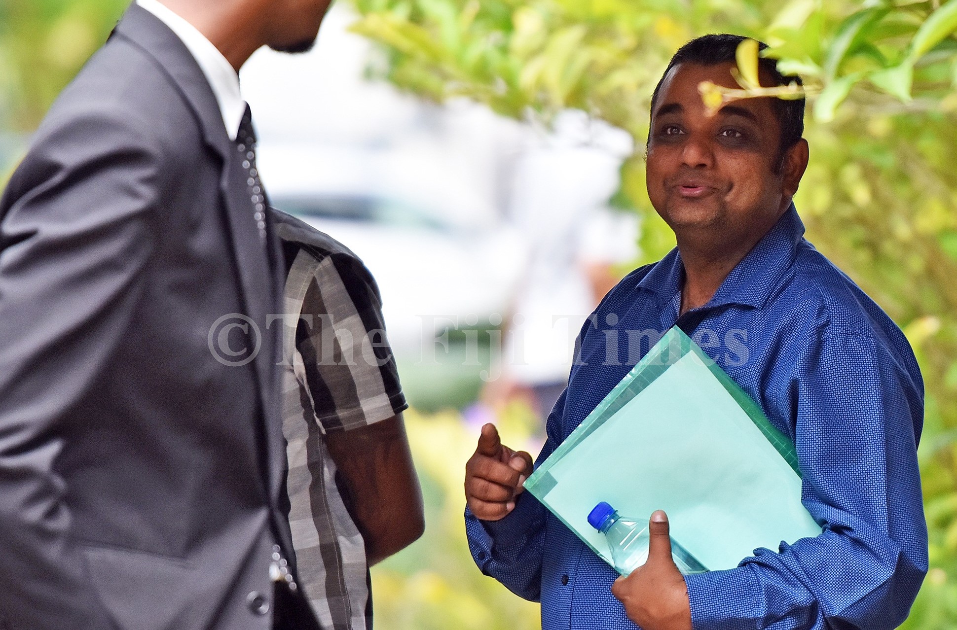 Former CEO Fiji Commerce Commission Bobby Maharaj (right) outside the Suva magistrates court. Picture: RAMA