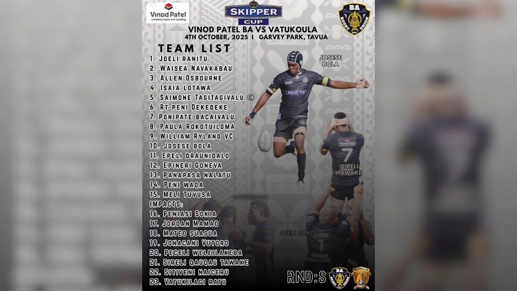 Vinod Patel Ba Rugby will face Vatukoula today in the eighth round of the Skipper Cup competition at Garvey Park in Tavua, in what is shaping up to be a crucial encounter for the Men in Black.