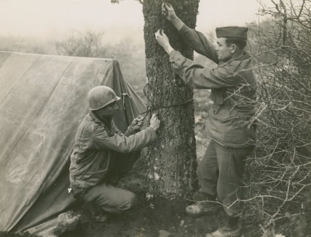 It is believed that soldiers and radio operators strung wire antennae between trees, sometimes extending up to 50 feet to elevate signals and improve transmission range.