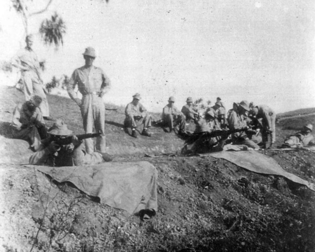 Soldiers of the 182nd Infantry practice marksmanship at a rifle range in Fiji. Picture: JACK MORTON COLLECTION/WWW.182NDINFANTRY.ORG