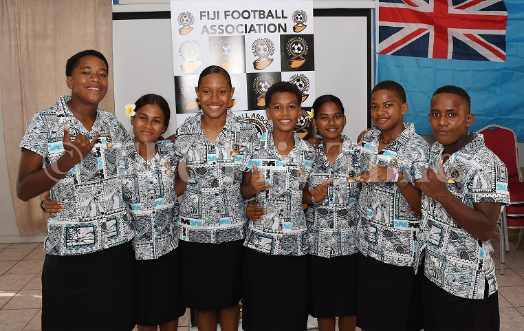 Members of the Digicel Fiji U15 girls team after the presentation at the Fiji Football Academy in Ba yesterday. Picture: BALJEET SINGH