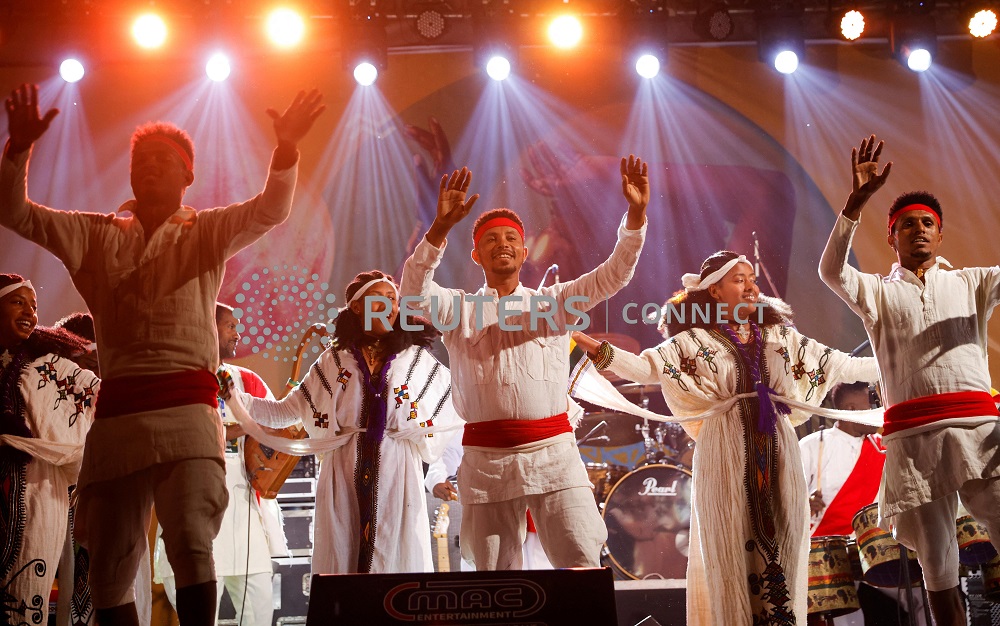 Ethiopian traditional dancers perform during the Jazz show at the Ethio-Jazz Festival in Addis Ababa, Ethiopia April 29, 2023. REUTERS/Tiksa Negeri