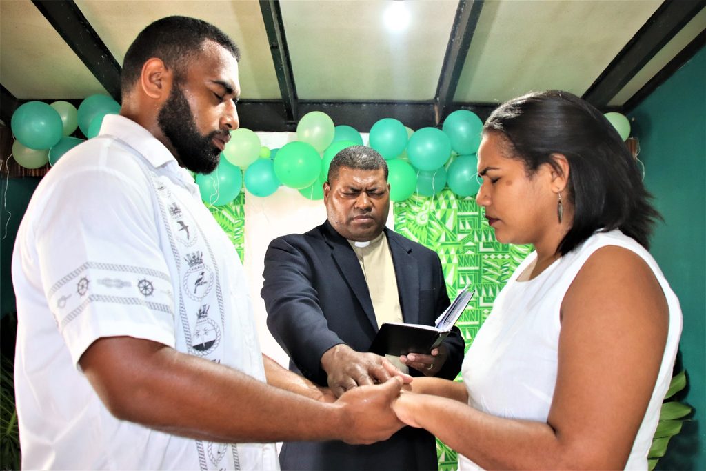 Rev Tunidau officiates at a marriage ceremony for a member of the Fiji Navy. Picture: SUPPLIED