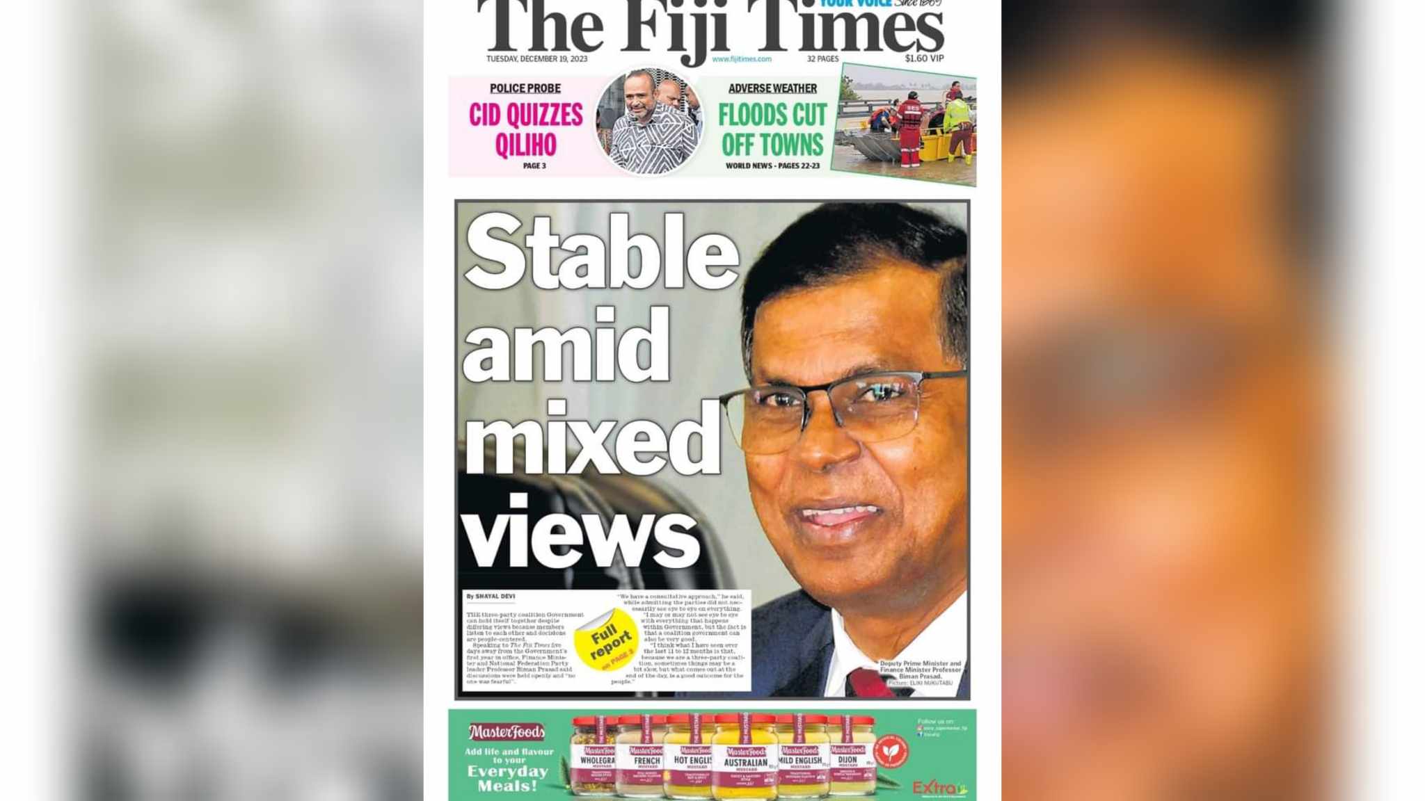 That’s the big news on the front page of The Fiji Times for Tuesday, December 19.