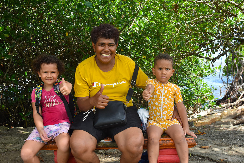 Tarusila Nakoronivalu, middle, with her grandchildren Yvonne (left) and Patrick Nanovu.
