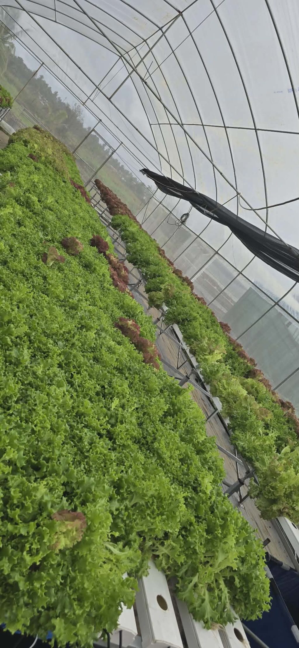 On one side of the farm sit four tilapia ponds, each stocked with thousands of fish. On another are protected structures filled with hydroponic lettuce, nearly 4000 plants grown in staggered cycles to ensure a constant supply to the market.