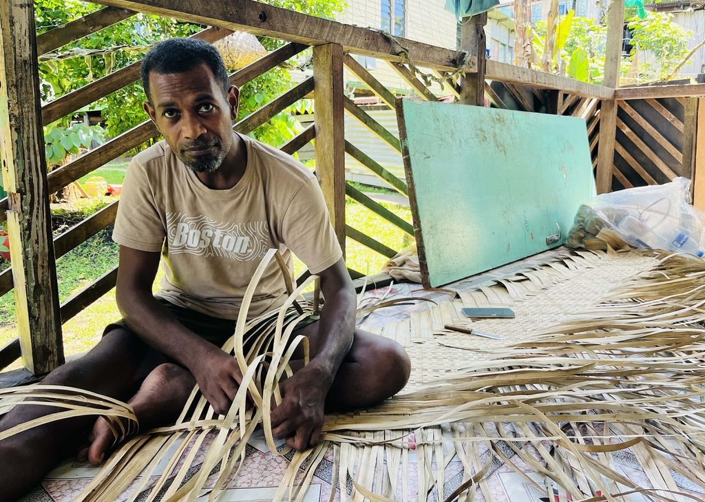 His biggest order so far was two vivivi sets, earning him $3400. One set has five mats and a vakamalumu (tapa) – that can take him one month to complete.