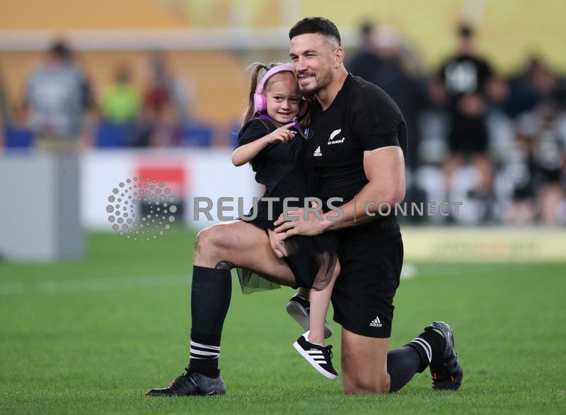 Rugby Union – Rugby World Cup – Bronze Final – New Zealand v Wales – Tokyo Stadium, Tokyo, Japan – November 1, 2019 New Zealand’s Sonny Bill Williams celebrates with his daughter after the match REUTERS/Peter Cziborra