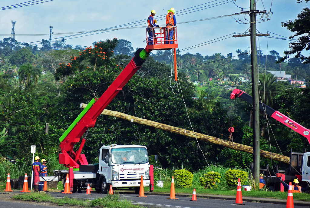 EFL workers working on power lines at Toorak in Suva. Picture: FILE