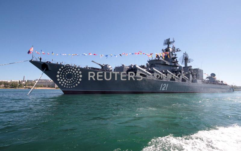 FILE PHOTO: Russian missile cruiser Moskva is moored in the Ukrainian Black Sea port of Sevastopol, Ukraine May 10, 2013. REUTERS/Stringer
