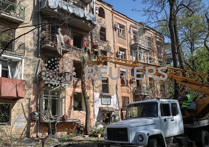 Kharkiv, Ukraine (Reuters) -Russian attacks on Orthodox Easter Sunday killed a woman buried under rubble and injured 24 in Ukraine’s northeastern city of Kharkiv and the surrounding region, regional officials said.