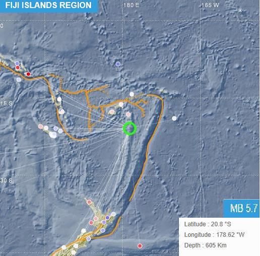 The seismic activity was located 636km South-southeast from Doi Village, Ono-i-Lau, 929km Southeast from Vunisea, Kadavu, and 1002 Southeast from Suva.
