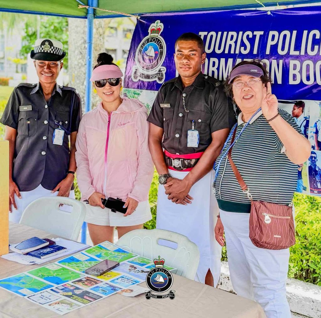 Fiji Police officers assist Discovery Princess guests at the tourist police information booth on January 8. Picture: FIJI POLICE FORCE