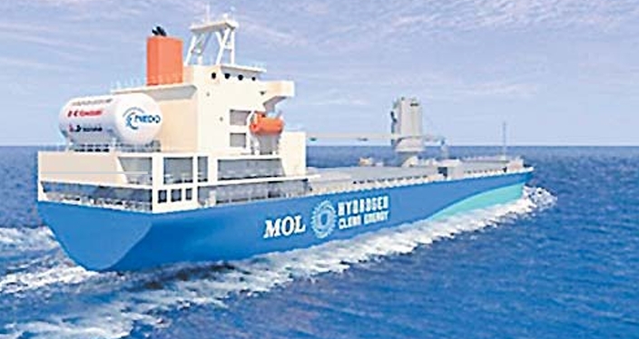 Japan reports a breakthrough with the demonstration of a large hydrogen-fuelled engine being developed by Japan Engine Corporation, working with Kawasaki Heavy Industries, for a demonstration project for an ocean-going vessel.