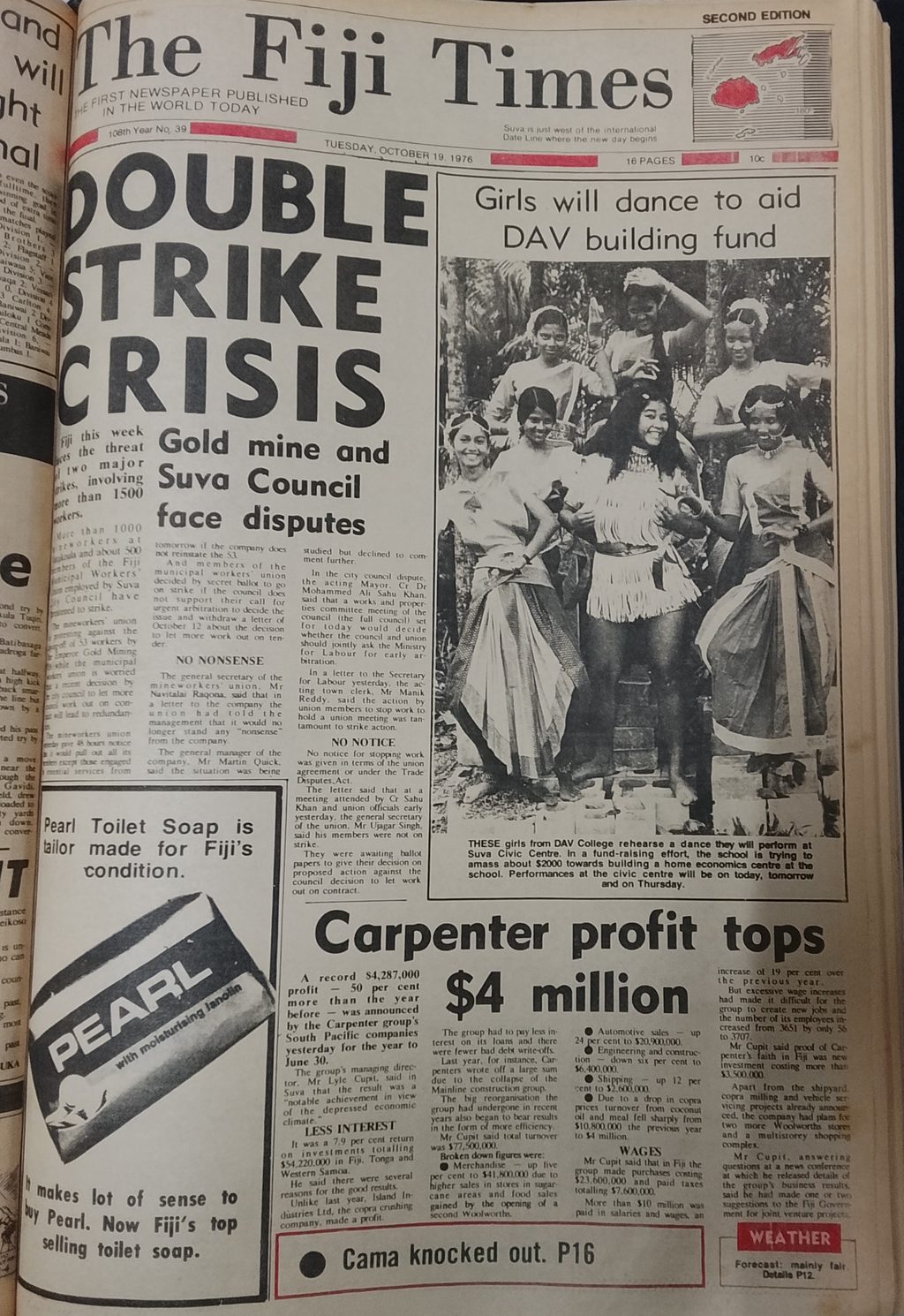 The Fiji Times front page on Tuesday, October 19, 1976. Picture: SUPPLIED