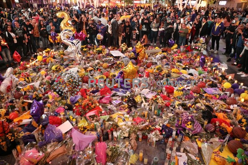 LOS ANGELES (Reuters) – Tens of thousands of Kobe Bryant fans flooded the grounds around Staples Center on Friday ahead of his former team’s first game since his death in a helicopter crash earlier this week that stunned basketball fans in the city and worldwide.