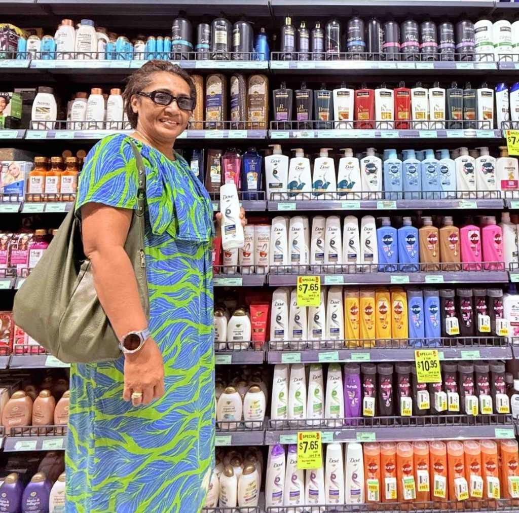 Selai shops for Dove products at Extra Supermarket in Laucala Beach.