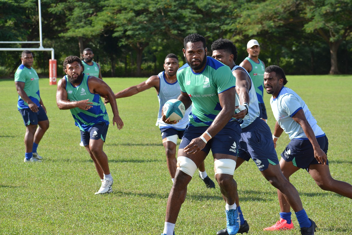 Chris Minibi (with ball) during the Fijian Drua’s captains run at Nadi international school. Picture: BALJEET SINGH