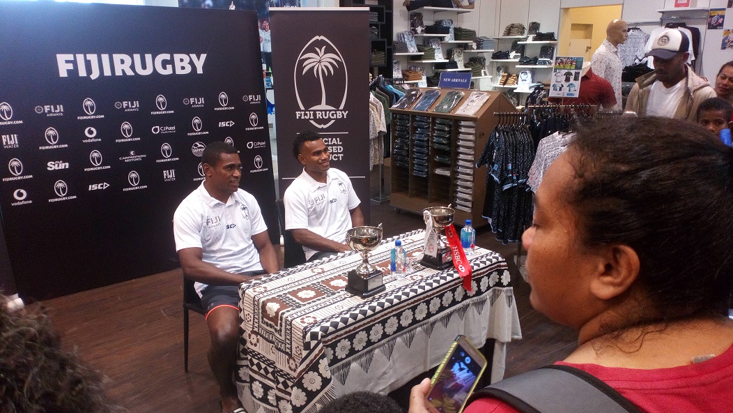 The two gentlemen were invited to meet their fans and also hand over the trophies to Tappoos as part of the partnership between Fiji Rugby Union and Tappoos Limited.