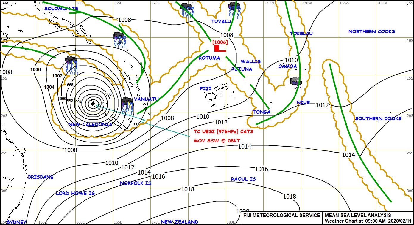 Forecast to midnight tomorrow for the Fiji group, expect cloudy periods with some showers over the eastern parts and interior of the larger islands.