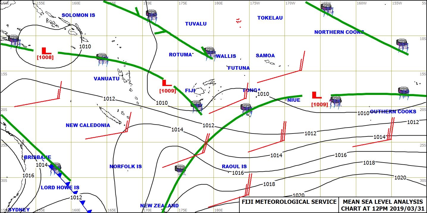 As for the forecast to midnight tomorrow for the Fiji group expect occasional rain and few thunderstorms over Yasawa and Mamanuca group, northern and western parts of Viti Levu, Vanua Levu and interior of the larger islands.