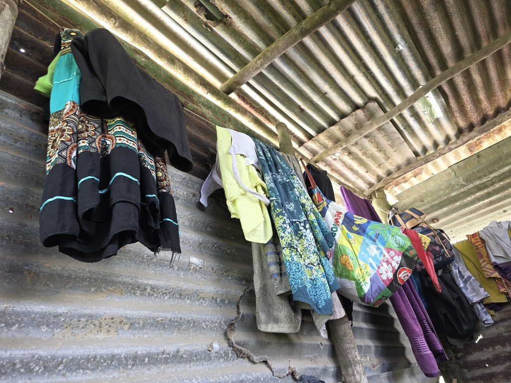 Women divers’ clothes hang inside the shed that belongs to the women of Nakini. Picture: JOHN KAMEA